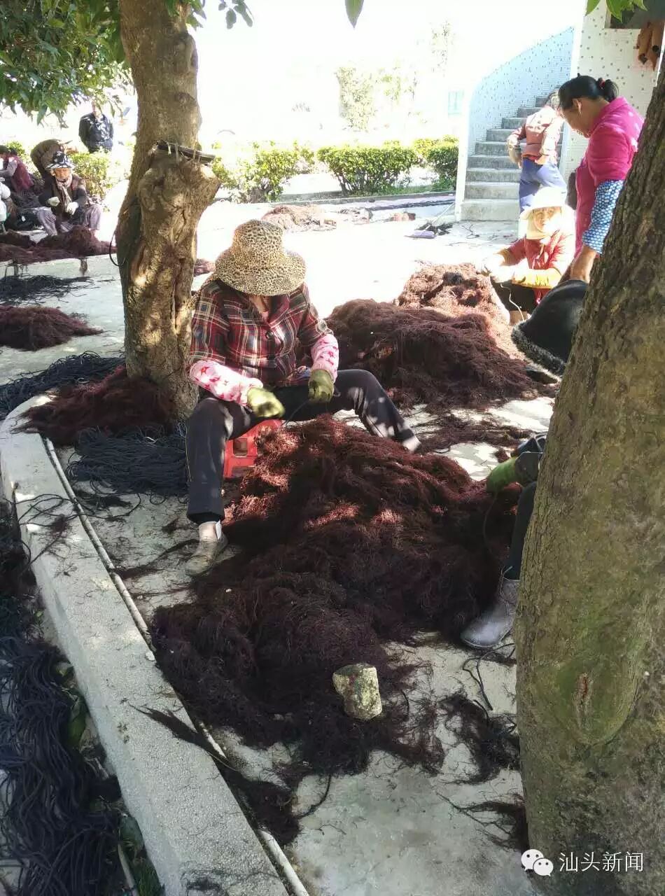 从2004年起,杨丽英和丈夫在南澳县羊屿村创办了南洋养殖场,养殖龙须菜和太平洋牡蛎。当下龙须菜收成的季节,夫妻俩每天都忙个不停。杨丽英告诉记者,龙须菜要收割两次,这天是龙须菜的第一次收割。而这些龙须菜还是菜苗,要用长绳把菜苗扎成一小撮一小撮,再把菜苗重新放入海中,等上一个月,就可以收成了。
