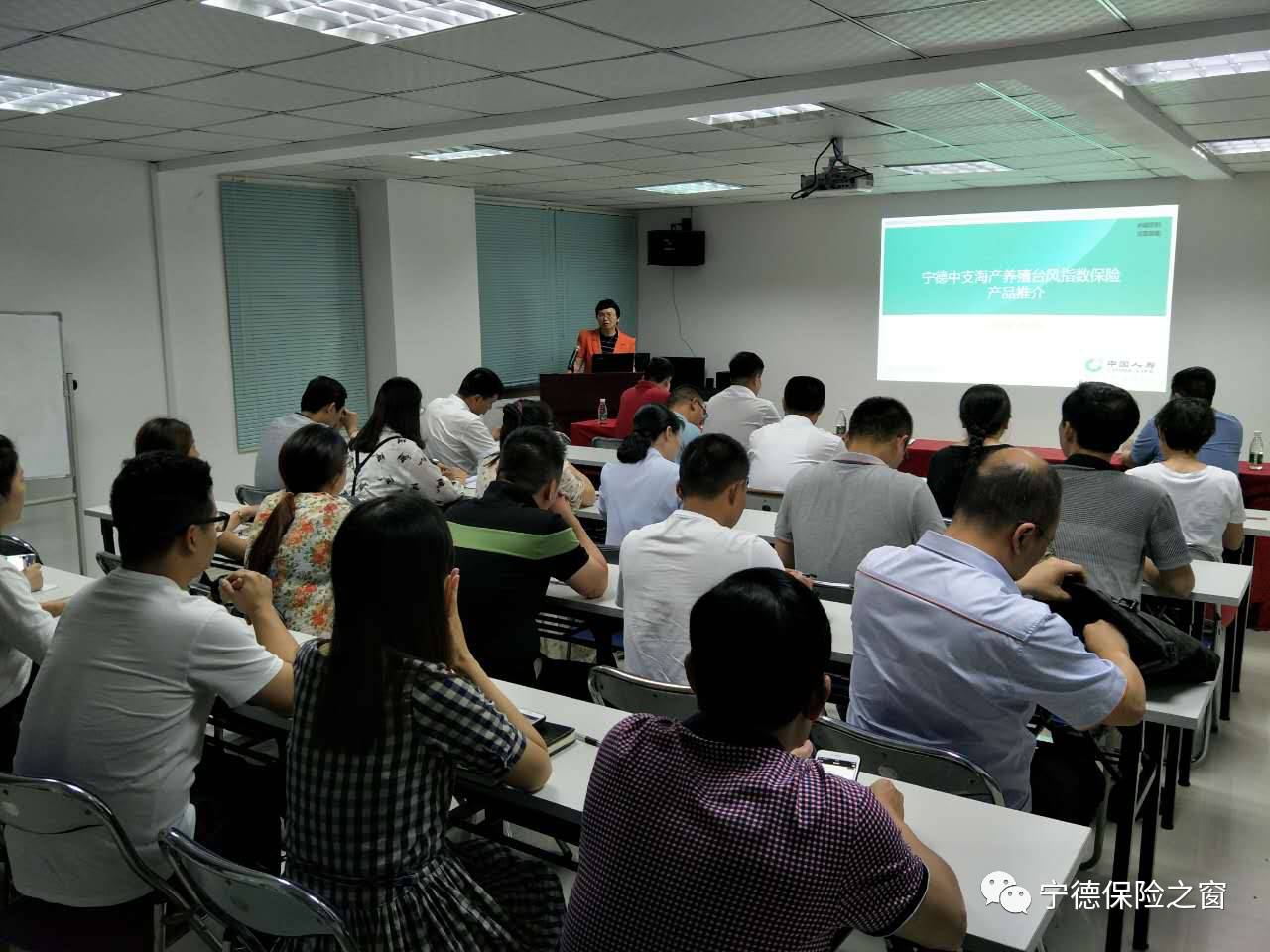 为全面推广海产养殖台风指数保险,为福建海产养殖产业发展提供全面的风险保障,5月18日,中国人寿财险宁德中支分别在福鼎、蕉城两地成功举办海产养殖台风指数保险产品业务推介会,45名海产养殖企业和客户参加,福建省分公司林全德业务总监携省公司农险部、总公司气象指数专家莅临推介会现场指导。