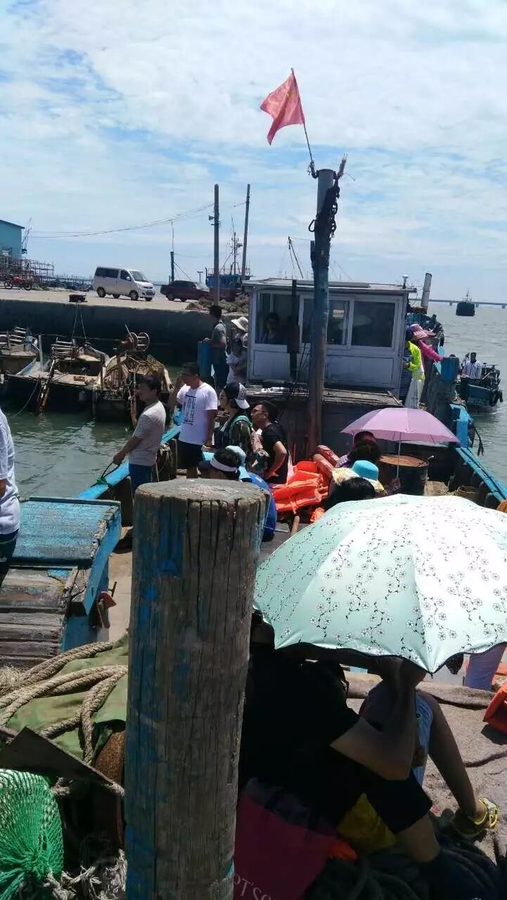 7月10日上午,大家兴致勃勃到达红岛,亲临胶州湾大型的生态海域,海域平静而辽阔,远处的胶州湾跨海大桥蜿蜒曲折,风景十分壮观。