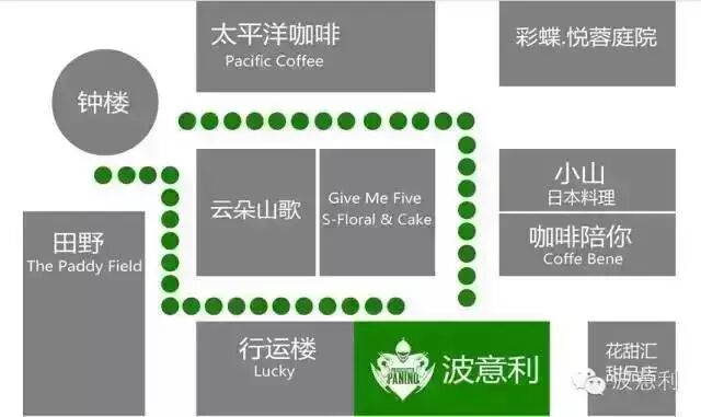 (钟楼附近,小山旁的路一直到底;行运楼旁)