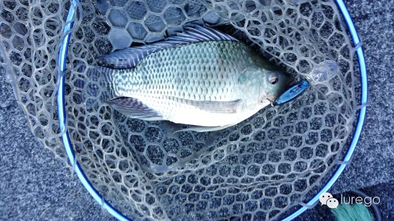 早上老曹有事提前离开,我一边等天水的钓友猴子和姚哥,一边现在码头搞搞,天气依然晴朗,早上气温3°,水温17.9°,微风东南。我在码头附近找到大尖角试了试倒吊5-8米落差,发现水下有很多树枝,操控很困难,只好改用德州,但是没有口。两位天水钓友中午才到,接上他两我们直接杀到码头对面大湾子,一路硬饵无果,然后回到右侧主航道一片水淹树搜索,没多远在一从灌木处菊花落水走线,我一扬杆,竟然没中,菊花已残,应该是小鱼没咬实。一路向东,我换上胖子,猴子用的是jig,姚哥用的是大胖子,在水中矮灌木中我获得一个不清晰的顿口,因为不确定我又原线路抛了一杆,这时中鱼,胖子这边5.4速比的轮子,12磅尼龙紧紧锁定这条鱼,鱼挣扎了两个来回被猴子抄起,今天的第一条鱼不大四十多,照相放走,我们继续,三人一起抡胖子,没多远我胖子快回收到船边时一条黑影尾随而至,我马上停收,鱼冲上来一口挂到鱼嘴边一点,我一提线,它一摆头扬长而去,猴子大叫“大大大”,后面各种尝试也没见这条肥鲈的踪影,这时远远一条路亚艇开过来,原来是宁夏的两位钓友过来,我们一问,好家伙人家钓了三条巨物,一条居然到60公分了,我们马上要求取出来看看,并帮他们称重,接过来时单手都拎不住,厚实的鱼嘴连秤夹子都夹不住,果然3.3公斤!太给力了,于是我们忙打听在哪里钓的,两位钓友不吝赐教,说是在不远处一处水中竹子钓到的,更增加了我们的信心,接着向大坝方向搜索。猴子在一处倒树附近JIG中鱼,在收回来时跑掉了,姚哥米诺中白条一尾,哈哈也是醉了。下午4点气温23°,水温22°,2-3级东北风,由于油箱不满,我们只好回程,在中午的上鱼点我们说再试试就回码头,我和姚哥还是用胖子,猴子用米诺,不多会我又中鱼一尾,才40多点,船钓时船头钓手很有优势,所以我上完鱼让猴子控船,胖子杆也借给他用,我休息,屁股还没坐稳,猴子大叫中啦,我马上拿起抄网,鱼一现身我哈哈大笑,罗非一尾,猴子不信,哪有这么大罗非,抄上船一看果然不小,猴子说行了,起码今天不龟,拿回去加餐。三人小队欢乐收工,虽然鱼获不多,但是觉得鱼口渐多,并且人家也钓了大鱼,明天加油!