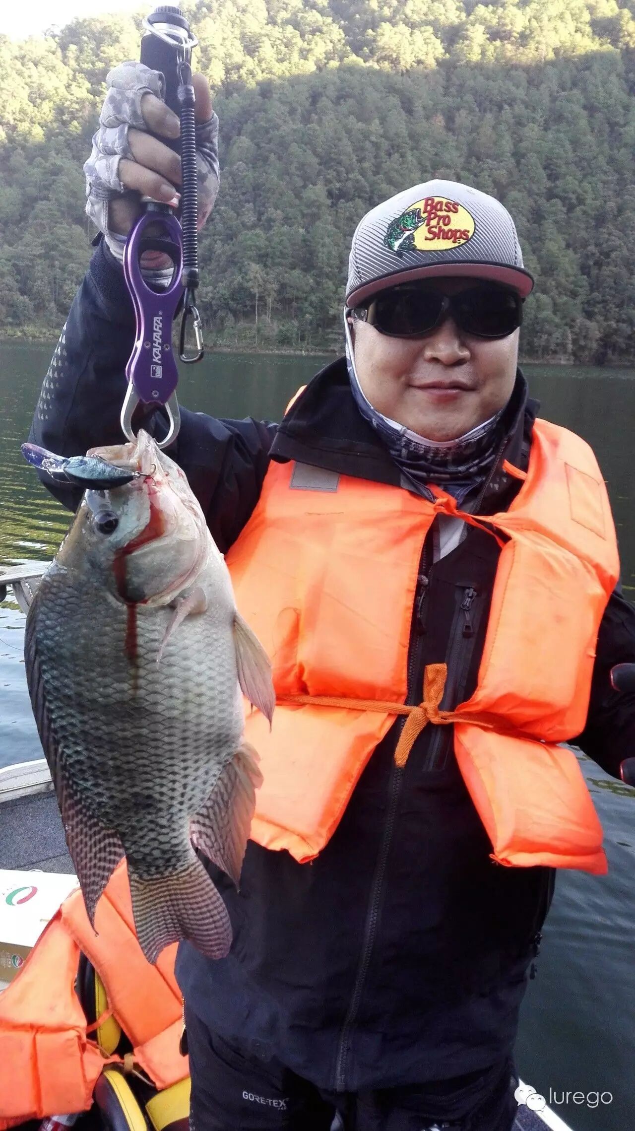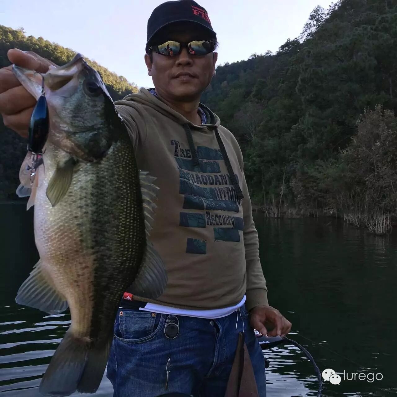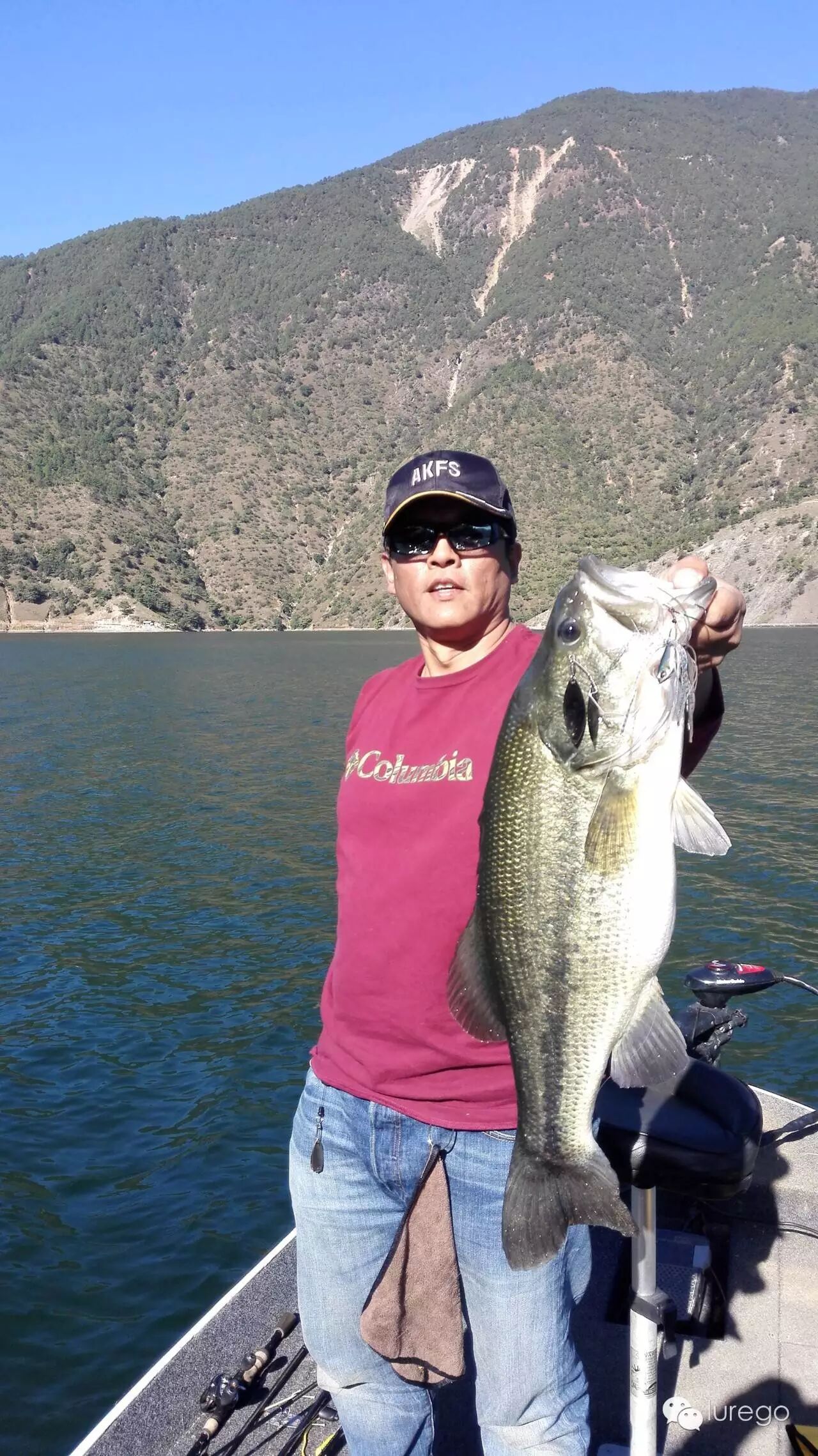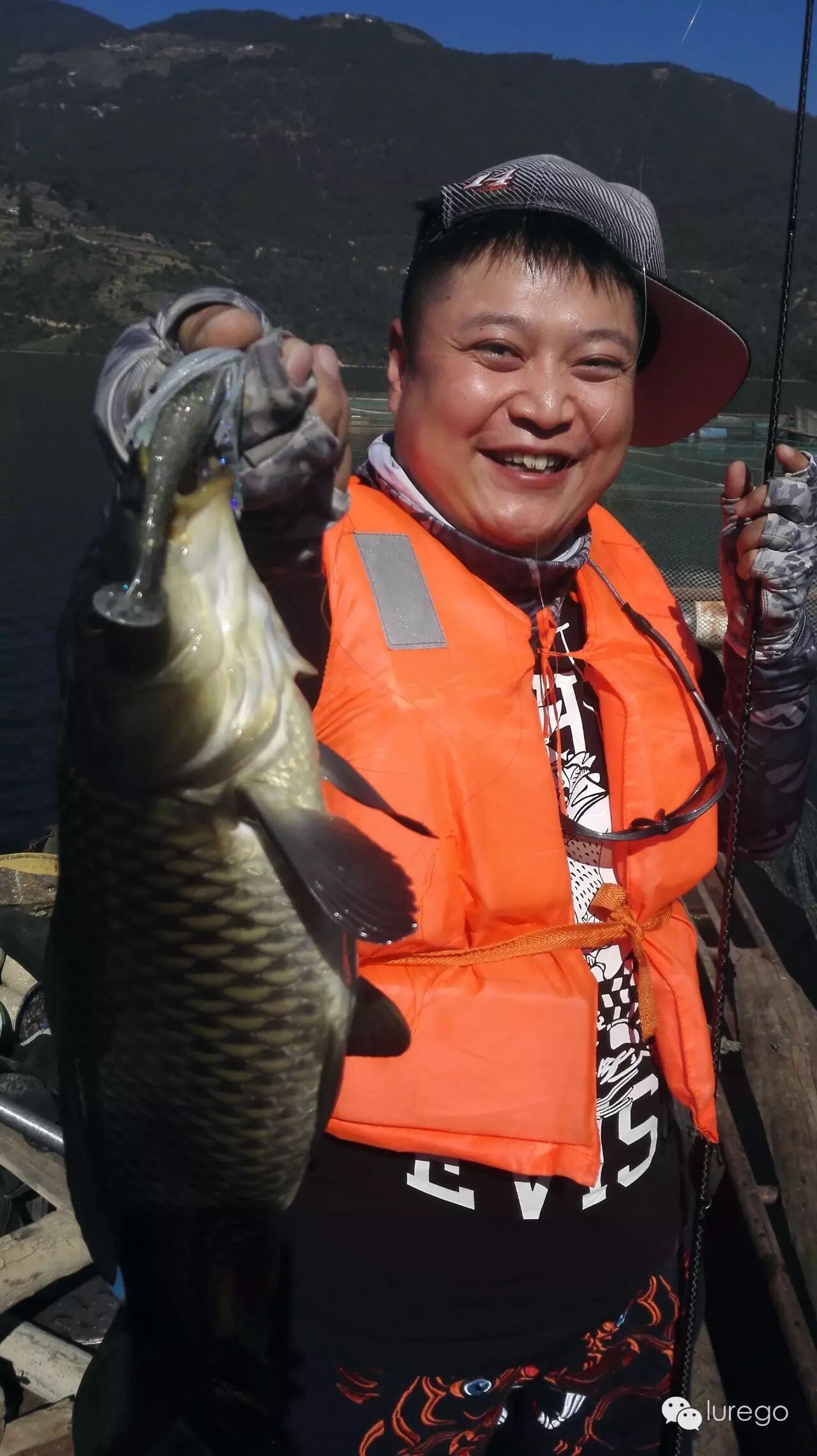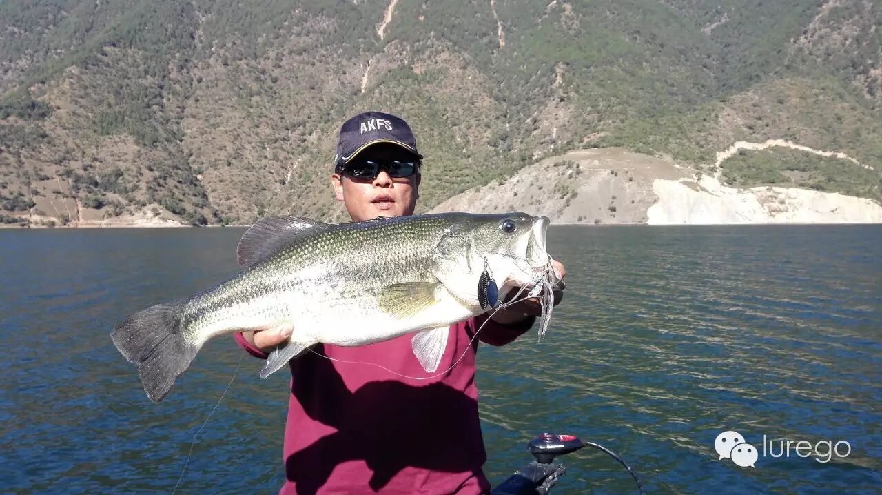 早上起来发现阴天,后来才明白,江水温度高,夜晚空气冷在山间凝结的云雾,随着太阳的升起,云雾散去还是艳阳天。今天我和猴子一船出码头往右,姚哥单人单船奔左,开始新一天的钓行。早上气温3°,水温19°,东南微风。我们一出发就直奔昨天宁夏钓友上鱼的点,发现他们也刚刚到这里,一片竹子在水中,我离开他们一段开始用鱼探看看这里为什么存鱼,原来离岸3-4米,水下四米有一圈灌木丛,鱼应该就藏在这个位置,岸边还有很多小树,虽然降水,这些障碍依然存在,我用胖子搜索,猴子开始用jig后来也用胖子,一直搜到一长边快结束,依然无果,我们又返回到竹子处,他们已离开,我判断鱼肯定还有,就是不开口,那好我们就磨鱼,反复把senko,T尾经过水下障碍,但是就是没有结果。这时已到中午,翟老板说好中午放鱼,我们回码头去拍视频。到了码头来到网箱处,工人和翟老板已经把网箱拉起,我开直播,一抄网一抄网的鲈鱼被从网箱放到江里,个头在30-40左右,但是各个膘肥体壮,一网箱大约一万斤,放了3/4左右。放完我们坐下跟养鱼的工人老天,还尝试了水烟袋,工人说这里养了十几种鱼,其中鲈鱼最难养,都是从几厘米的小鱼苗养起的,开始用白条打成鱼泥喂,但是其中肯定有长得快的,就会吃长的慢的小个体,为了减少损失,就要分开大小个体养,这样不断长大,不断分养,直到相互不能吃掉对方才放在一起,这样每条鲈鱼都会经过工人手20次左右,鲈鱼长大了只喂白条,澜沧江白条泛滥,所以老板网箱所有鱼都是喂白条,我们很惊讶,鲤鱼也吃白条吗?是的工人说外人听了都不信,猴子当场拿了一个14克jig实验,果然网箱里的鲤鱼开始疯狂追逐咬jig,钓上一条,看来什么习惯都是可以改变的。下午我们直接来到昨天山西钓友介绍的一个钓点,在右手很远的一个湾子里面,一进去感到悬崖高耸,阴风瑟瑟,一看水深53.2米,悬崖下枯树水中屹立,我用德州T尾连搜带打,饵过一个枯树时哆哆两口,根据这几天的经验肯定又是罗非在咬,忽然看到一只鲈鱼从我的饵后冲出来嘴里叼着一只罗非甩来甩去,我天可怜的罗非就这样被螳螂捕蝉了,我们只好继续向里,这条鲈鱼嘴还被罗非卡着肯定没工夫理我们的假饵。这时猴子接到姚哥的电话,那边激动的声音语无伦次,原来是他上了条大鱼说有60+,就在我们上午磨鱼的地方,让我们快过去,我们一听马上掉头往回开,来到外面主航道看到原来起风了,跟上午风向相反,可能是窗口期,于是马上停在一处类似的标点开钓,我抛了两杆胖子发现线毛了,需要重新绑线,为了节省时间我让猴子才前控,我绑好往船后一丛草边抛去,没摇两下,中鱼,鱼一个劲的往下扎,虽然很有力道,但是我知道肯定不到50公分,拉起一看48,重量2.02公斤。接着前行,没几杆又中一条,这时主航道风已掀起浪,空船5档才能前行,肯定是风带来了窗口期,我赶紧让猴子在前面,他用复合打边,大喊中了,很有劲大鱼,我也放下杆子准备帮他拿鱼,拉到一半,只见白影一翻,我乐了,大罗非,猴子也看到一松劲,鱼逃脱了复合的魔爪。接着往前走,风越发大,我们只好坐着,不然脚下不稳,猴子用胖子收到船边了突然被咬,他惊呼了一下马上大骂“老子来小湾是钓鲈鱼的,不是钓你!”我定睛一看哈哈哈又是罗非。这时天已逐渐暗下来,我们只好准备收工,看到一丛水中灌木,我胖子抛过去忽然发现回来的路上有一处水下草丛,胖子想过去只能挑起杆尖,就在胖子磕磕绊绊经过草上时,水底一个身影窜出一口咬住胖子就想往草里钻,我哪敢容它进去,一带领出来,这小子发现不对一次次往水下钻,力道十足,水很清我看的清清楚楚,并不大但是也算圆满。回到码头见到姚哥,原来姚哥中了四尾,一尾巨鲈,他没带尺子和秤,叫我们过去帮他量鱼,但又不好意思耽误我们,只好自己折腾往活鱼箱里舀水,想等我们到了,发现鱼太大,根本在鱼仓里立不起来,怕鱼死掉只好放掉,后来比着鱼仓盖子回来用尺子复量确定62公分左右,老大哥兴奋的很,只拍了视频,居然照相都忘了,老哥说一次性小湾毕业了。