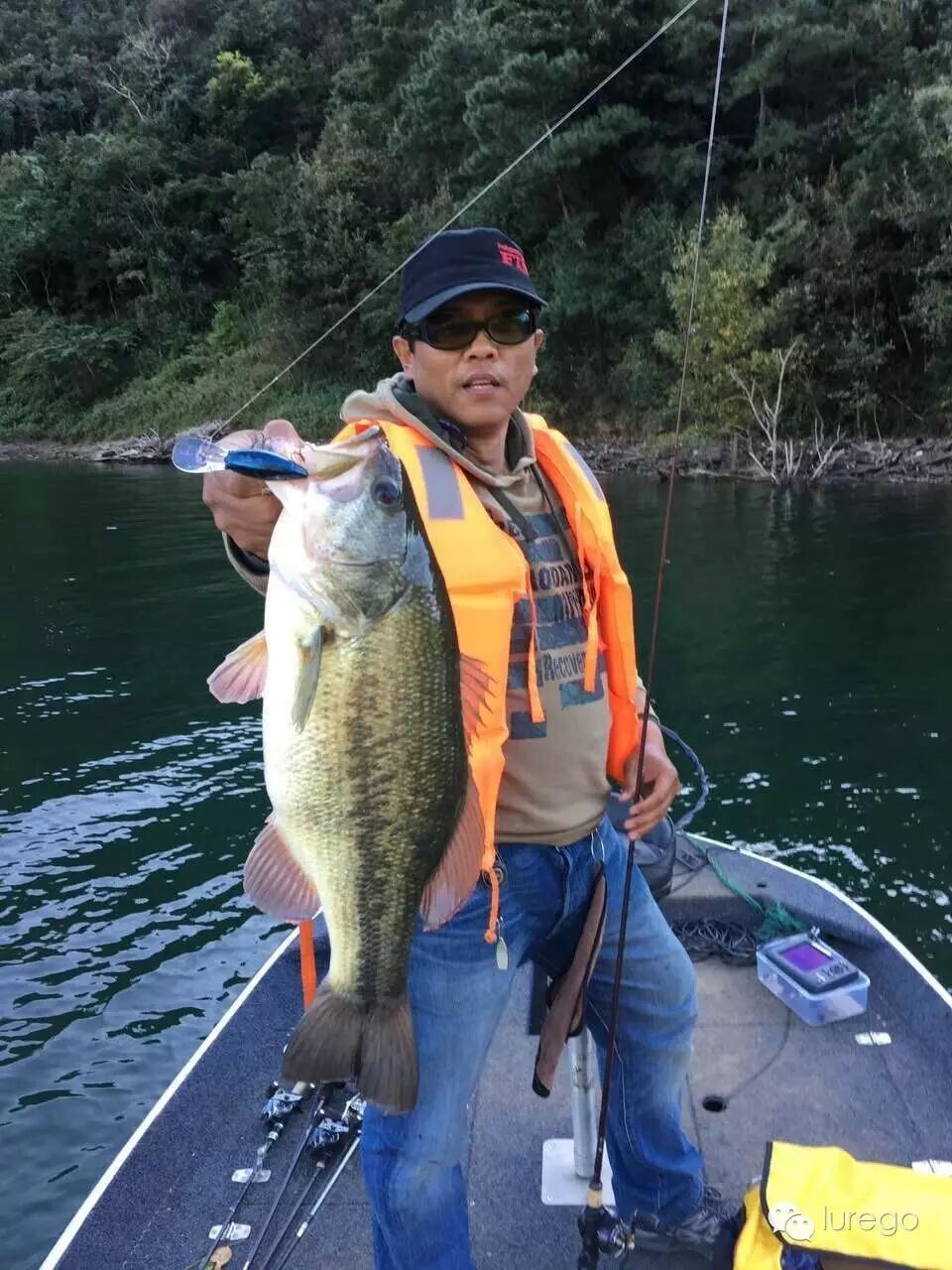 经过昨晚在县城的休整,我们三个斗志昂扬回到码头,今天我和姚哥一船,猴子自己一船。下船已经临近中午,天气晴,气温22°,水温22°,微风。我带姚哥来到昨天波爬上鱼的点依然用波爬尝试,姚哥用JACKALL太阳鱼SWIMBAIT,水中树又高出一节,水又降了大约20公分。转移到我们昨天最远点开始向下游接着搜索,一条300米向阳的岸,另一条背阴的岸都是主航道两侧,虽然岸边障碍不少,但是水明显比上游混,岸边也泥土发黑,看来这里没有鱼的踪迹。我们发动油推又向大坝方向推进,来到一处红土岸,水中林立一些树枝,停下船我两都用复合打边,没走多远,我的黑复合刚一落水就被截口,拉力一流,我判断鱼不小,果然奋战几个回合,巨物出水,姚哥帮我拍照,55公分,2.74公斤。看来这条边不错。前行不到50米复合从一处水中树枝边拉过被攻击,拉出三米,鱼奋力挣脱,复合被弹回瞬间忽的一下,从这丛树下冲出6-7条巨鲈,每条都不下50+,我两当场惊呆,在我恍惚间,其中一条一口叼住我的复合转头就跑,我这才回过神来奋力拉住,姚哥也马上抛出复合,马上被疯狂的鱼群围攻,姚哥心急扬杆早了,刚咬住住的一条挣脱了,他又抛下去,一下又被另一条咬住,这次没容鱼再跑掉,可惜当时没有开视频,那场面既惊险又刺激。话说我这边一直在溜这条,那边的拉力让我杆尖不停地点头,我只好一次次拇指放线,再一次次收线,那边姚哥已把鱼拿上来,我这边还没溜到船边,当时我两的肾上腺素肯定飚到最高点,大呼小叫,不亦乐乎。终于我的鱼也成功上船,我们一通忙活,开视频,他帮我拍照,秤鱼,量鱼,我帮他量鱼,等他放下手里家伙时,我说让鱼过过水,别过分消耗鱼的体力,没成想,刚才拿鱼的手指累的抽筋,刚把姚哥的鱼放水里,鱼遇水一个强力摆头,我的虎口一阵剧痛下意识手一松,鱼跑了!姚哥对不起,我不是故意的,哈哈。我这条57公分,3.10公斤,姚哥那条52.5公分。忙完,接着往那抛,姚哥又中,我赶忙看后面还有没有跟着的,结果没有,姚哥等鱼到船边准备拿线,鱼一甩头跑掉了,可惜了。后来我们接着打了十几杆居然没动静了,这帮鱼估计发现危险不敢冒头了,我们说一会再过来,先给猴子打电话叫他过来。我们钓完这条岸就停船吃东西等猴子,猴子姗姗来迟,还没有中鱼,我两把刚才的经过跟他复述,听的他血脉喷张,“在哪?”开船就要过去,被我们拦住,说现在鱼还没放松警惕,等会过去效果好。他终于坐下来吃点东西,一边还在打听具体位置。饭毕我和姚哥准备再往前面去找找有没有新的标点,那条岸留给猴子。没走多远抬头一看不远处大坝已经在视线里了,在一处尖角位我用换上的IMAKATSU小南回收时的一下停顿,我感觉是鱼,但是刺完拉了两下没完全拉动,不会是挂了吧,姚哥已经准备好视频,也准备放下了,我使劲往回带了带,又能往回了拉了,这个力量比刚才的大,不会是更大的巨物吧,我一边说一边控好,鱼一遍遍的钻船底,最后被擒一量55公分,2.94公斤,看来是因为鱼肥劲大。我和姚哥说看看猴子去吧,不知道那边情况如何。等我们开船来到巨物岸,看到猴子还在细细磨磨的钓着,我们问他如何,他哈哈大笑给我们看活鱼藏,也是一条大鱼静静地趴在里面,赶紧秤鱼,量鱼,照相,放流,重量2.42公斤,52公分长,他终于得偿所愿。我们商量再钓一会返程,我和姚哥往反方向搜寻,猴子坚守阵地,我们还没开出多远,猴子大叫,中鱼啦,我们跑回去一看又是一条52公分大鱼,把猴子乐坏了,我们给他拍完照,接着按计划进行,猴子不走了,围着这条岸反复钓。往前搜了500米左右看天色已晚,我们离码头比较远,开船叫猴子一起返航,没想到这小子又用胖子中鱼一尾,这条40多,上鱼就是快乐的,夕阳西下,我们迎着余晖奋力向前。回来我们总结,上鱼时间还是下午2-5点,那条岸短短300米长一共出了7条鱼,50+六条,40+一条,可以说是巨物岸,简称“猪圈” ,明天继续猪圈拔巨物去!