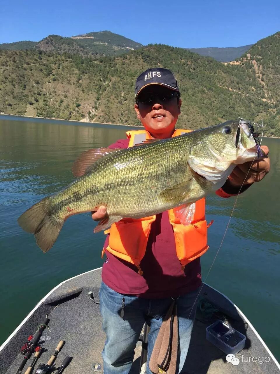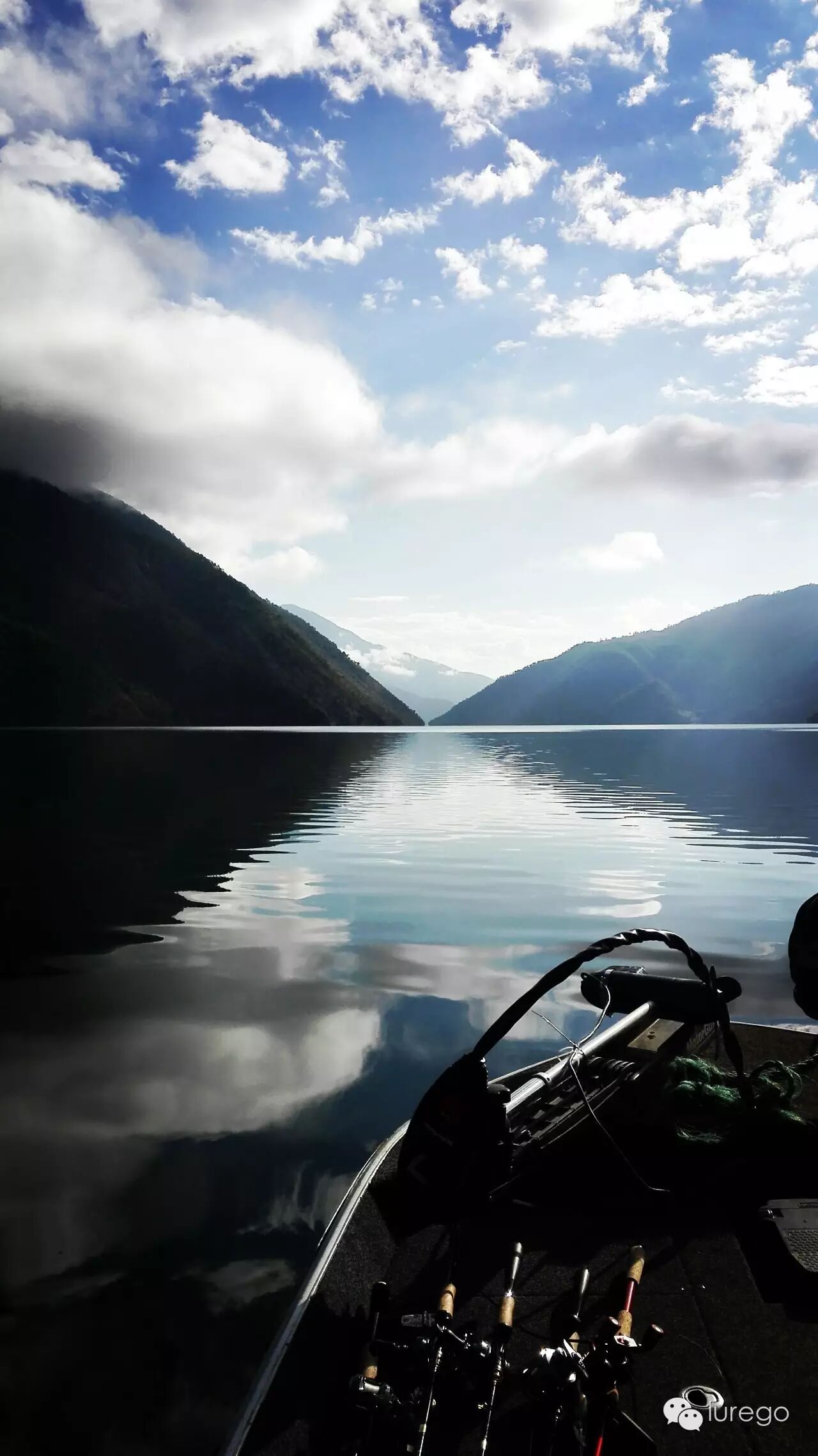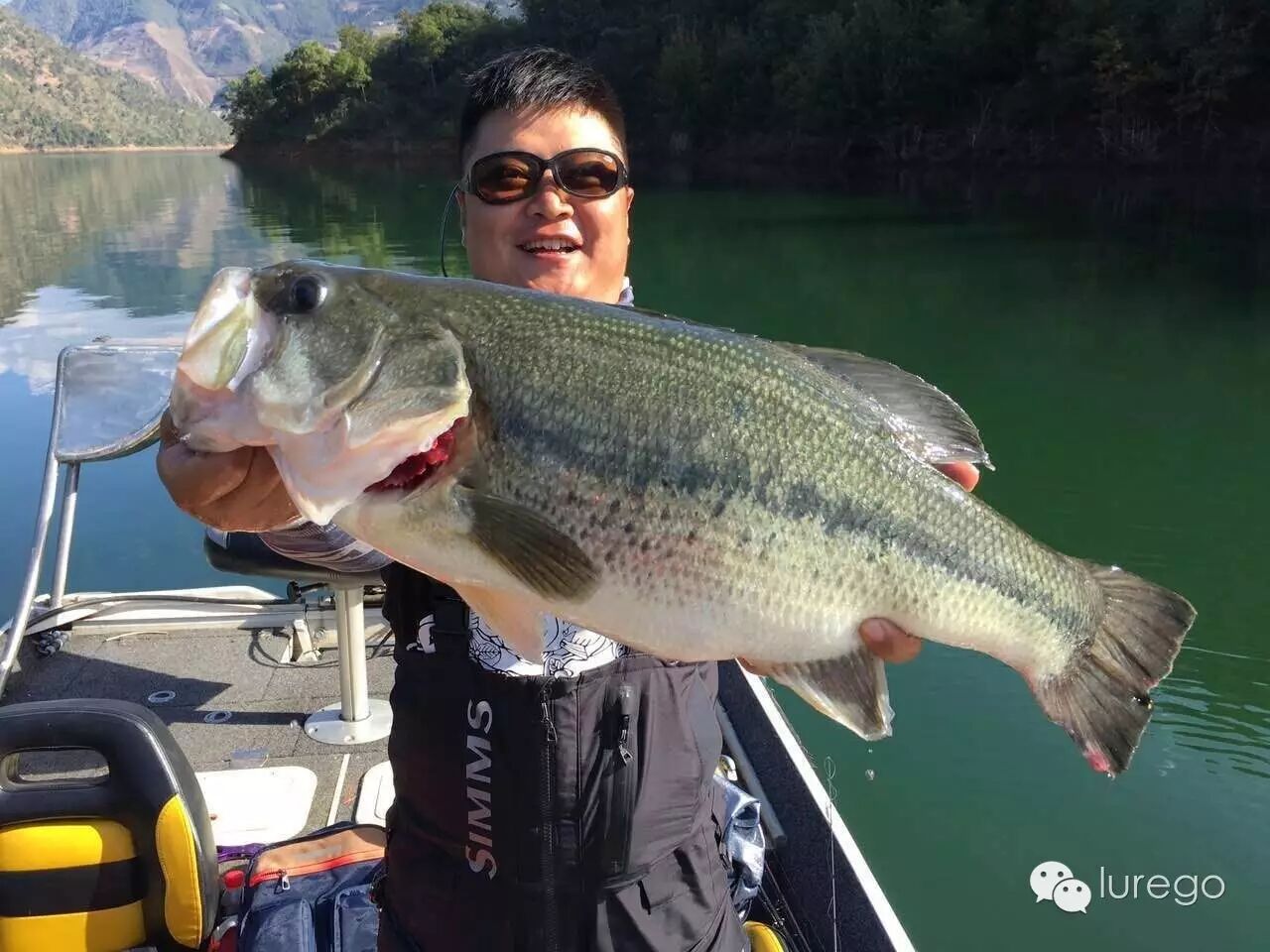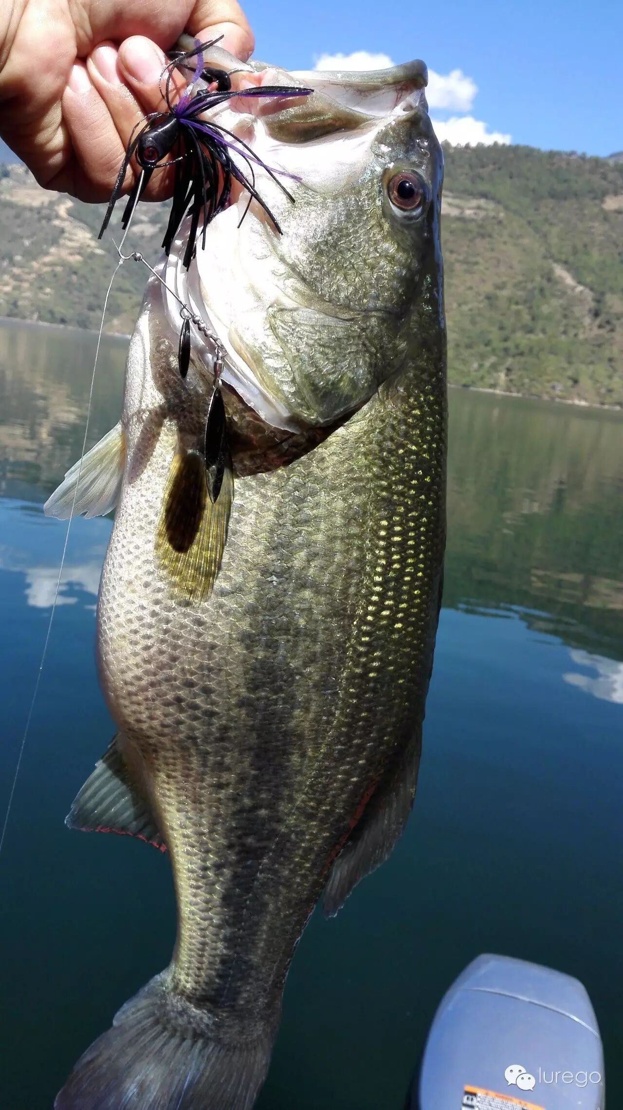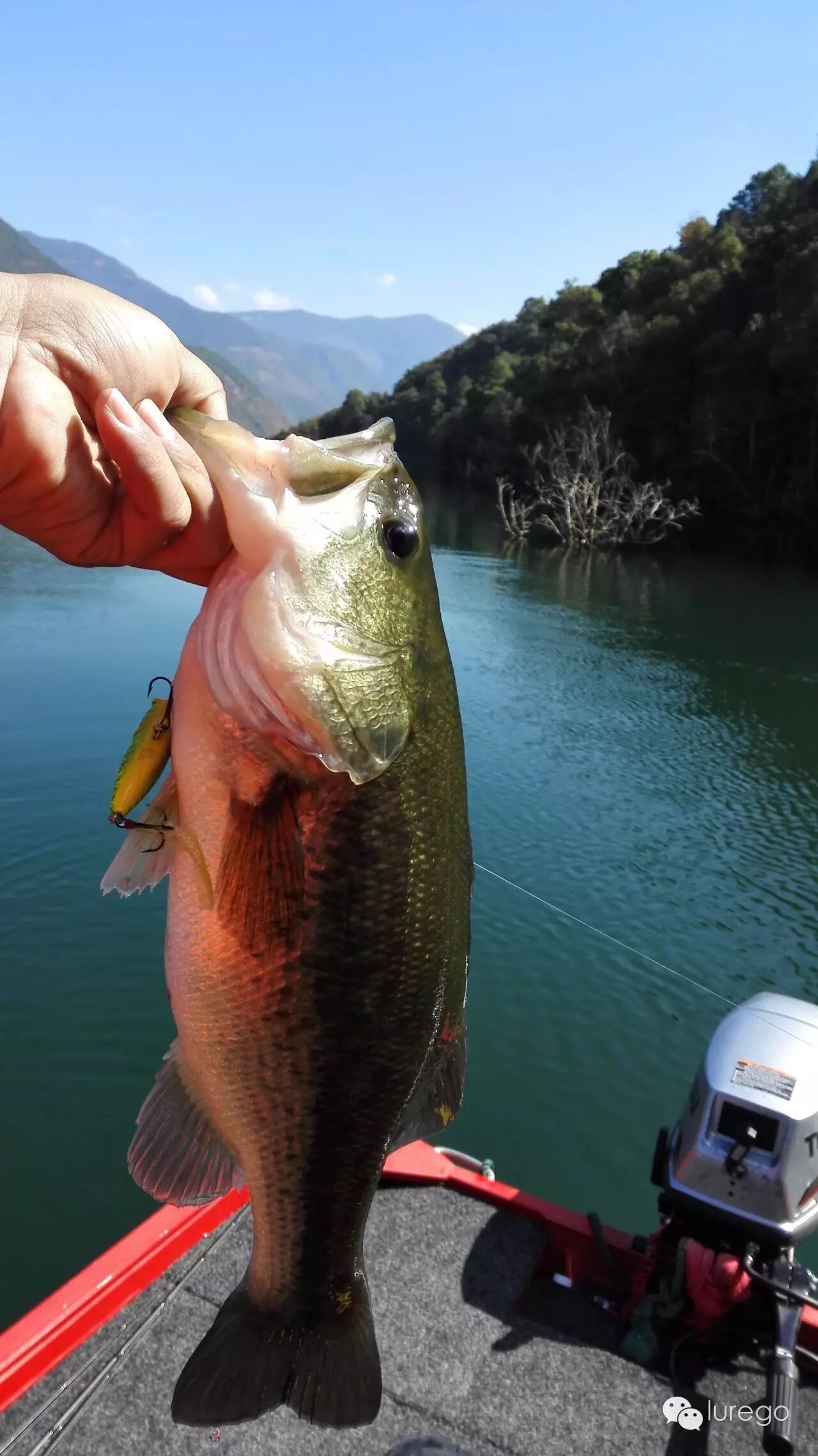 今天为这几天摸索确认的模式做验证: 窗口期2-5点,条件有风,地点主航道右侧,地形水上水下灌木,水深1-3米,天气晴,水温22°,用饵胖子、复合,离岸10-20米。今天天气晴有云,早气温6°,中午23°,水温21-22°。通过几天钓况一早口不好,我单人单船先试了试码头附近昨天放的鱼开没开口,没有钓到,然后又去了湾子里面尝试最早接受阳光的一面,无论是反应饵还是软饵还是没有反应,我只好开船来到昨天上最后一尾鱼的地方,这时阳光刚刚照到这里,水面平静,那棵暗树丛已经因为降水露出一点点尖子,我想试试波爬的效果,抛过标点然后匀速接近枝稍,稍作停留,再快速启动,第一杆,第二杆,然后换个角度,第三杆一个水花饵消失了,我觉得带上力量了赶紧收线,怕鱼绕树枝,拉出障碍发现鱼不大,40多,但是这是我在同一个标点前后两天拉出两条鱼,说明水下障碍还是鱼主要的藏身之地。我又打了打周边无果后果断向新的位置出发,因为老标点被钓过很多次,无需证实,要找类似的新位置尝试模式是否能够对接。这时已经1点左右,快到窗口期了,快马加鞭来到举行塌方的丁字路口东侧,这是我从来没有钓过的位置,但是地形环境跟模式点一致,我拿出14克黑紫色复合,因为天气晴朗,水能见度高,金片和银片和亮色胶群会让鲈鱼产生警惕,而黑色属于收敛色,可以很好的避免以上的问题。因为这几天姚哥用复合中的鱼偏大,我胖子上的5条鱼居然都不够50,这在小湾是很罕见的,后来我分析胖子运动速度快,那么一大一小两条鱼谁最先抢到饵,肯定是小鱼; 即使只有一条大鱼在你的做钓路线上,胖子划过眼前,吃喝不愁,慵懒肥硕,因降水情绪不佳的大肥鲈才懒得追。那么一只高傲的复合,优雅闲庭不紧不慢的游过来呐?在主航道一处小凹陷处,一堆浮木堆积,这是不被我看好的点,因为前几日无数次尝试这样的标点都失败了。但是既来之则试之,复合一落水下沉,从浮木下面杀出个程咬金,哇呀呀一口咬住复合转头想跑,我挥杆带动钓线在空中发出嗖嗖的响声,看你往哪里跑,小湾的水质能让你享受到饵落水,下沉,启动,被咬到溜鱼,鱼反复挣脱的全过程。从线那头力道感觉应该上50了,这条鱼是这几天拉力最强劲的,居然让我反复手刹车几个回合,终于把它请上了船,一量刚刚49公分,2.22公斤。这时姚哥和猴子正好也过来了我们一起吃点东西休息一下,他们在老标点中鱼一尾。饭毕接着来,他们去前面看看我还是沿着这条岸搜,打开摄像机,没多远在两丛树枝间复合突然被叫停,我管他三七二十一用力刺出,那边开始发力,巨大的鱼影在我船前左冲右突,两次钻船底,但是正副两钩牢牢地引领它来到我的面前,当抓出水面时,我知道这条比刚才那条还大,一个人上鱼未免手忙脚乱,先往舱盖上撩水,因为中午被晒得太烫,会灼伤鲈鱼的皮肤,拿尺子,拍照,再过水,再称重不亦乐乎,最后锁定55公分,2.62公斤,这条不算肥,但是长度破我个人记录,放流时这家伙摇头摆尾就是潜不进水里,我接近它想看清怎么回事,这才游下去,吓死我了。后面我们没有打完这条边,今晚准备进城(凤庆县城)休整,所以早点会码头,临回去前中罗非一尾,加上猴子上午钓的青鱼,一起带回给码头工人改善伙食了。晚上来到凤庆大吃大喝,然后住在滇红大酒店舒舒服服洗个澡睡个懒觉,明天再战。