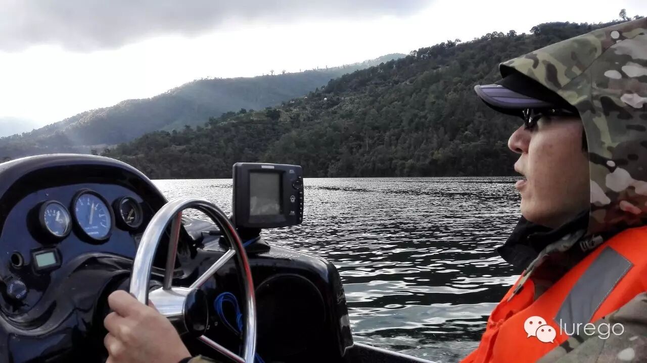晚上睡得不好,估计是太兴奋了,一早7点就爬起来准备,装鱼探,搬装备上船,因为没别人,我们挑了带中控的大船。一早气温7°,水温18°,多云,需要穿上冲锋衣,大船油50匹,开到最大马力还是蛮快的。我们首先在码头斜对面的大湾子开始,风不大,阳面,水清晰度4米,太阳一出来天气放晴,水升温很快,一路钓进弯底,老曹主要用的是5克铅头曲柄钩+KT3.8寸T尾,我开始用IMAKATSU铁嘴铅笔,后用IS200SHAD搜索都没遇到咬口;然后转移至右面湾子找弯内滑尖处,老曹复合和T尾交替,我换成14克铅+JACKALL6寸长须虾德州,IK复合小南,搜完这个湾子已到中午,气温达到23°,水温升到21°,2-3级东南风。吃点东西和点水休整完毕我们接着向大坝方向另一个大湾子进发,这里岸边植被茂盛,水底灌木繁多,经常饵被挂,我们离岸10米左右做钓,希望兼顾岸边的障碍和水下4-5米的水下障碍结构,放慢节奏,终于我获得了今天的第一个咬口,德州到底拖动了2米左右感觉饵被衔住,之所以用“衔住”这个词,是因为刺鱼后并没有着钩,老曹说我是不是错觉,我觉得是鱼,但是没有咬住,接着再反复试,再没遇到攻击,只好接着前行,来到一大片浮木,此堆浮木下面水深9米,左右多杆无果只好移动。来到离大坝不远的一个湾子,里面有三处入水口,饵鱼成群结队,这时阳光刺目,晒到脸上灼热,必须防护好不然肯定会被晒伤,我们又是各种尝试,只有我的复合收到船边时看到一条鲈鱼跟随而至,见到船转身摆尾离去,等钓完这个湾子,老曹说他上次来中大鱼的湾子就在对面,这个时间点也好赶紧过去,到地一看傻了眼,原来他钓的位置都在水下,既来之则安之,我们发现这里还有不少水中树,算是不错的标点,果然我的大JIG下沉时一个巨大的黑影闪现出来,追了下,然后又裹足不前了,我果断的换上SENKO飘下去,人家理都不理,估计是水太清,早已戒备,好吧一会再来找你。我们一直钓到湾底,一岸怪石嶙峋,枯木林立,多好的藏身之处啊,为啥就没有如狼似虎的大鲈那?这时天色已晚,我们只好收起杆恋恋不舍的开船返航,40分钟左右回到码头,工人们已准备好晚饭,问我们钓的咋样,我们真是不好意思回答,饭后还把他们钓的罗飞烤了给我们吃,连我这平时不爱吃鱼的人也禁不住诱惑,大快朵颐,期待明天能找到位置。