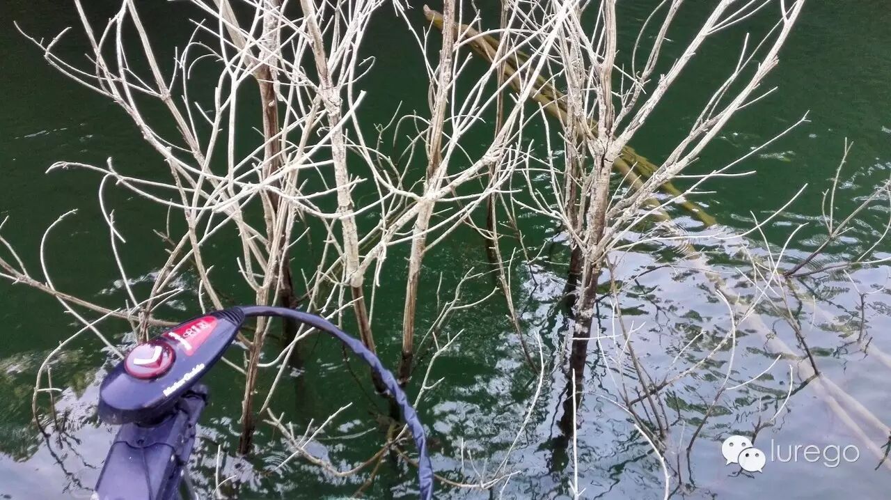 这是我第二次来到小湾,上次是春季,这次算是秋季了,跟春季不同这次水位基本是满水状态,鱼比较靠边,深度在1-3米左右,鱼群主要停留区域是较缓的主航道斜坡,岸边要有较密集的水中、水上障碍,最佳标点就是离岸4-5米水下树丛,聚鱼最多,简单障碍边也有零星离群鱼。