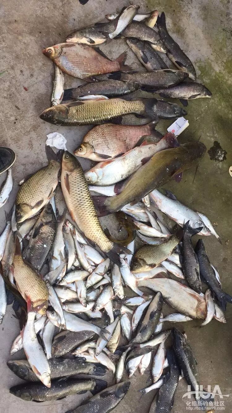 鱼获、翘嘴,黄尾、草鱼、扁鱼、鲫鱼、黄桑鱼、青鱼、回鱼、约四五十斤吧