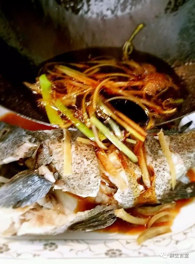 6. 姜丝放在划刀处,和鱼腹。