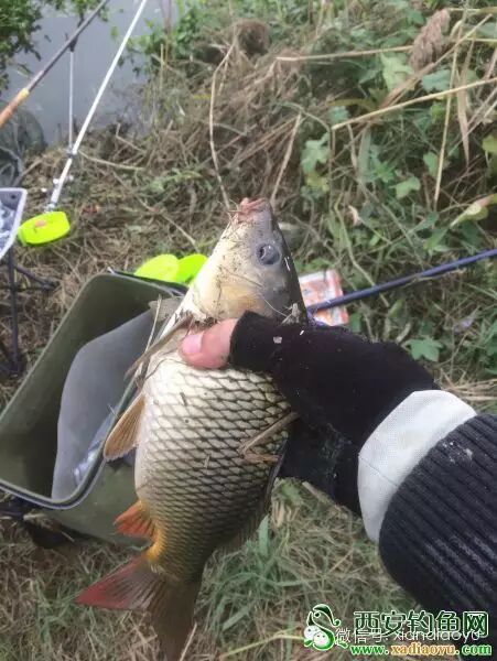 鲤鱼上了两条,大的有个一斤半。小的不到一斤。