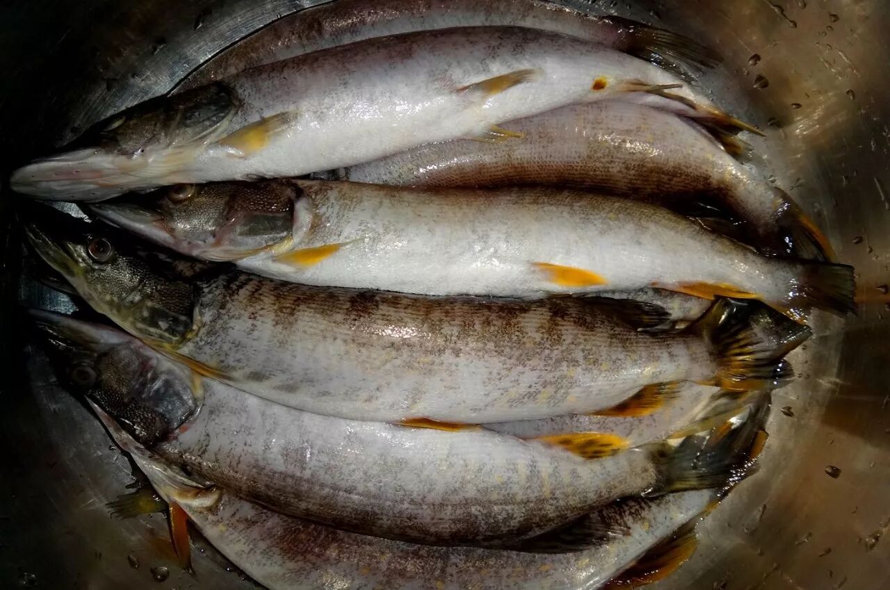 狗鱼俗称鸭鱼,是在北半球寒带到温带里广为分布的淡水鱼,口像鸭嘴大而扁平,下颌突出,是淡水鱼中生性最粗暴的肉食鱼,除了袭击别的鱼外,还袭击蛙、鼠或野鸭等,据说一天可以吃和自己体重相当的食物。狗鱼是鲑形目狗鱼亚目狗鱼科的唯一属,共5种,中国有2种,即黑斑狗鱼和白斑狗鱼。黑斑狗鱼主要生活在我国东北的吉林、黑龙江和内蒙古呼伦贝尔一带。白斑狗鱼主要分布在新疆北部的额尔齐斯河和乌伦古湖流域。狗鱼的色斑颜色,是适应环境主调颜色的生存保护色。东北多黑土,故而狗鱼是黑斑;新疆多沙漠,故而狗鱼是白斑,自然选择,天工所为,毫无神秘可言。