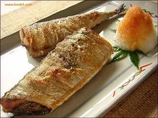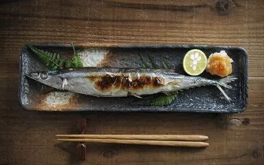 ——秋刀鱼是日本料理中最具代表性的秋季食材之一,最常见的烹制方式是将整条鱼盐烤,搭配白饭、味噌汤、萝卜泥一同食用。秋刀鱼的鱼肠有苦味,但是大多数食客并不把鱼肠去除,而是用酱油或柠檬汁来给盐烤秋刀鱼调味。他们认为酱油的咸鲜味或柠檬的酸味与鱼本身的苦味相结合,才是秋刀鱼的最佳风味。