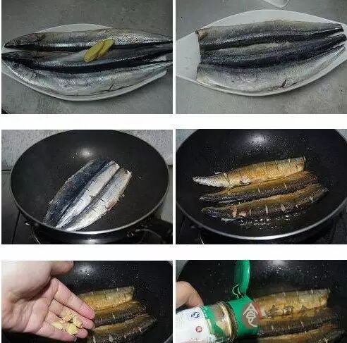 1.秋刀鱼两条,去内脏,头尾,洗净。