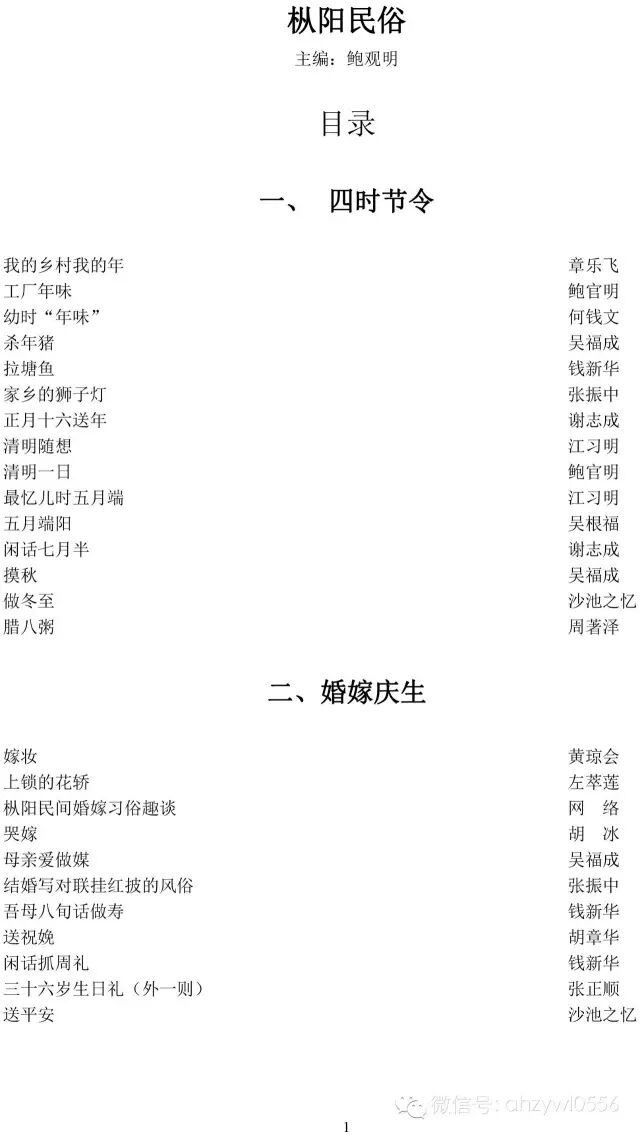 《枞阳文化丛书》之《枞阳民俗》卷,因出版需要,需补文补图。按《枞阳民俗》卷初稿目录。遗漏的枞阳民俗文章请大家踊跃补充投稿。图片请标明作者,按出版采用单张15元,组图30元供稿。投稿邮箱:473288132@qq.com (注:投稿请注明作者姓名及联系方式)