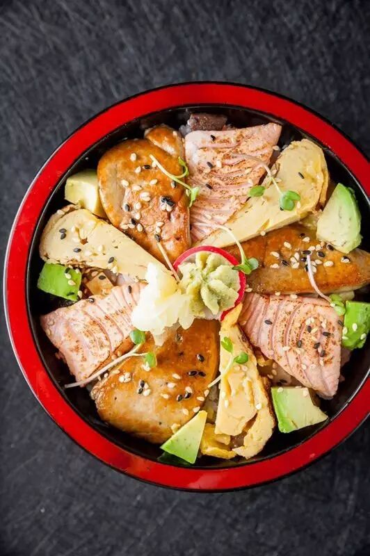 肉质厚厚的鱼生夹在饭中外面裹的是用秘制的天妇罗粉,各自的味道,脆脆的口感,配上带有芥末味的酱汁,幸福感瞬间爆棚。