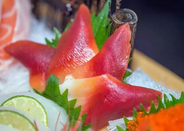 新鲜色泽诱人,清晰的脂肪纹理,丰腴的鱼油