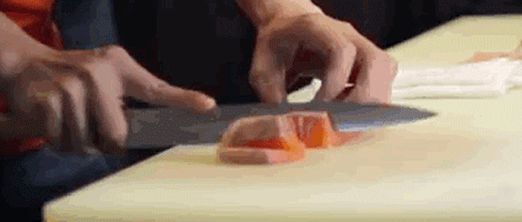 师傅手起刀落,新鲜的三文鱼刺身就搞定!