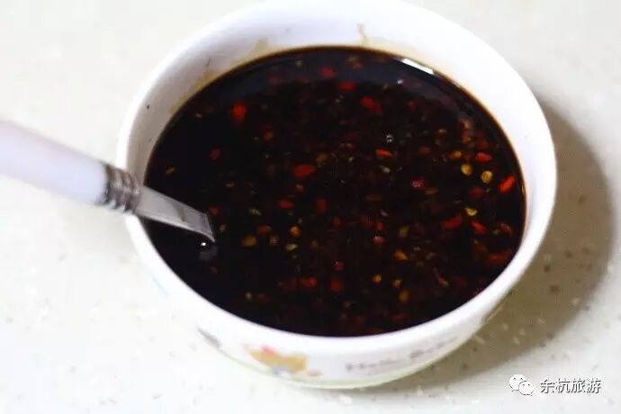 6、调汁:生抽、香醋、剁椒、盐等混合装碗中拌均匀