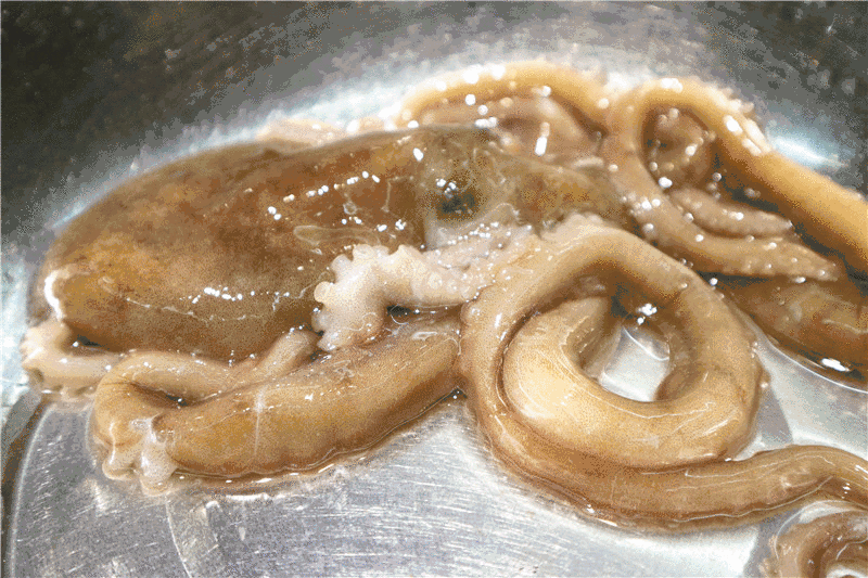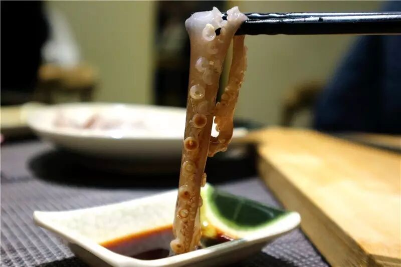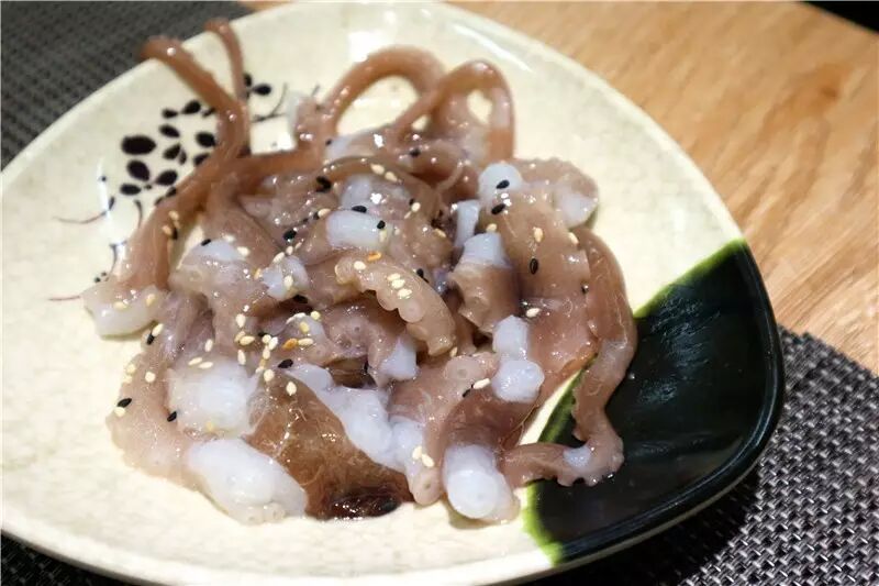 秋名刺身的做法让人比较容易接受,去掉章鱼头,把章鱼的爪捋直,切成小段,蘸调味再直接送入口中。 吃活章鱼千万不可囫囵吞枣,而是要细嚼慢咽,否则章鱼吸住口腔壁,放入一些柠檬汁口感更好,如果没吃过活章鱼,你无法体会到章鱼与牙齿对抗产生的Q弹口感,体会过的朋友都说,那是熟章鱼无法比拟的。