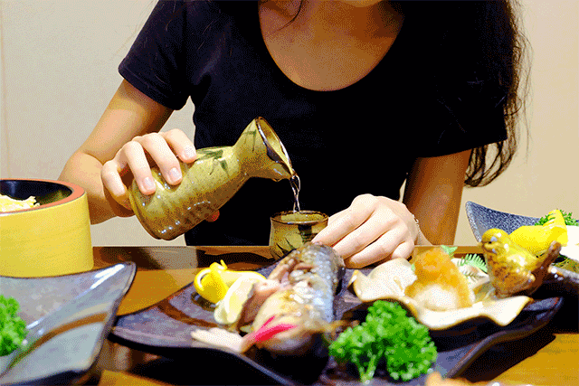 一瓶好的清酒赏味期限之短,一壶清酒清澈见底,喝法也是满满的仪式感,将玻璃杯放入小盒子后倒酒,直至杯子里的清酒溢出填满整个盒子即可。