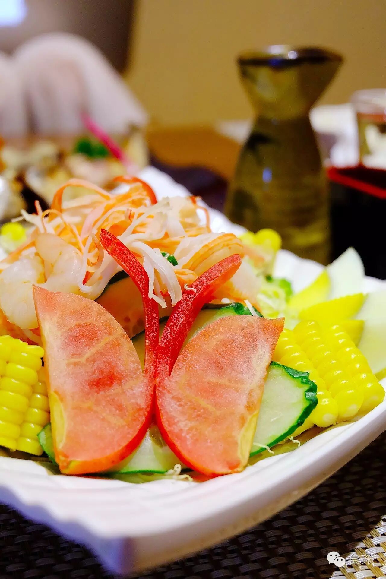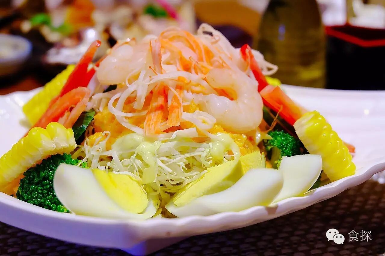 | 和风招牌沙拉 | 沙拉酸甜开胃,没有人会说不爱的吧,夏天的色彩完美融合在碟子里,切成丝状的蟹棒和去首尾的大虾和素菜一起用浓郁可口的和风沙拉酱拌匀。