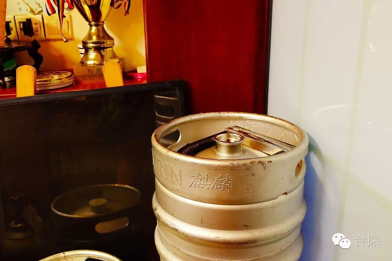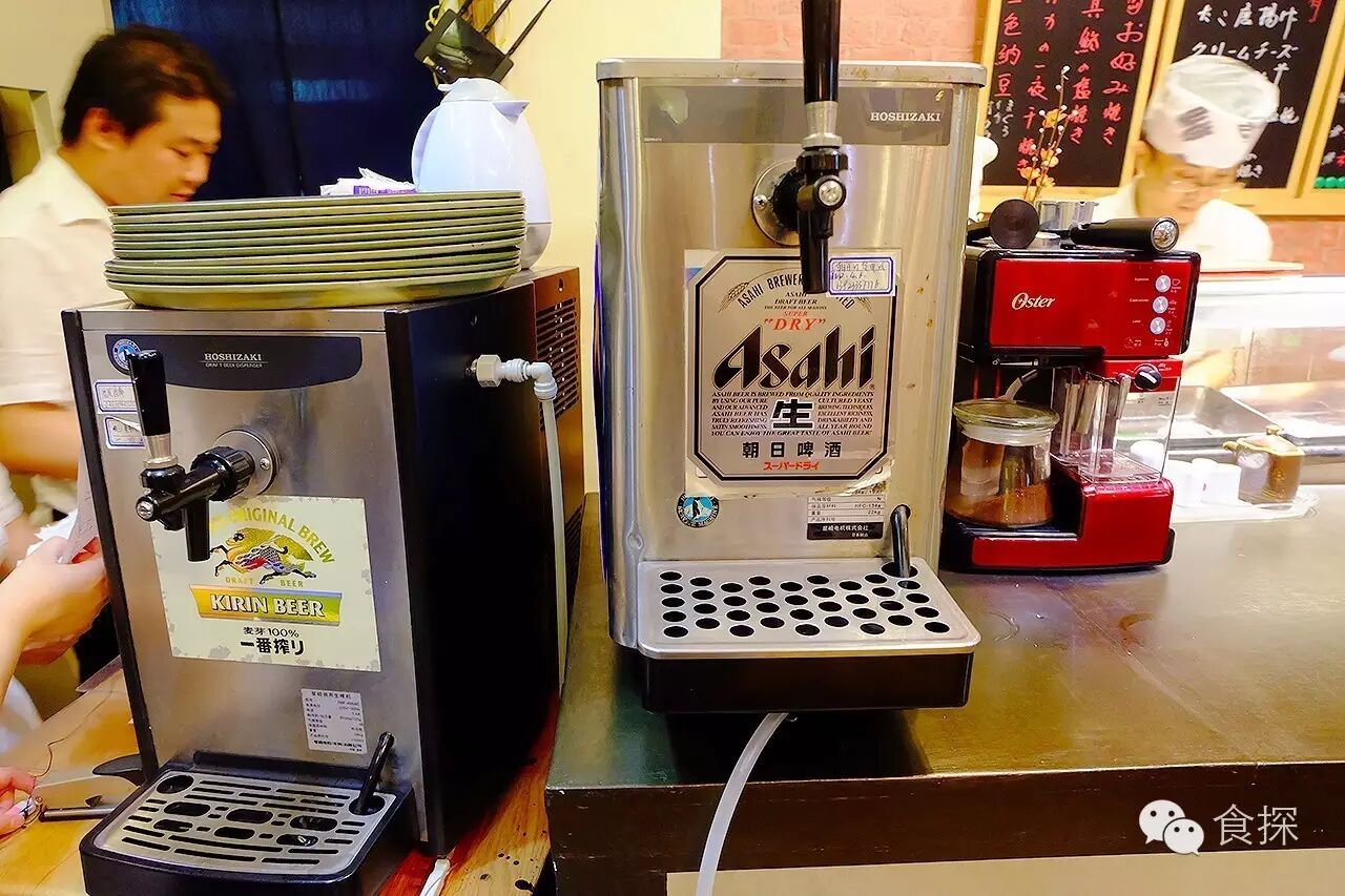 除此之外日本常客最常喝的还有现打的麒麟生啤,不大的店面快要被一罐罐麒麟啤酒桶给塞满,最特别的是这里居然能喝到少有的朝日黑啤!