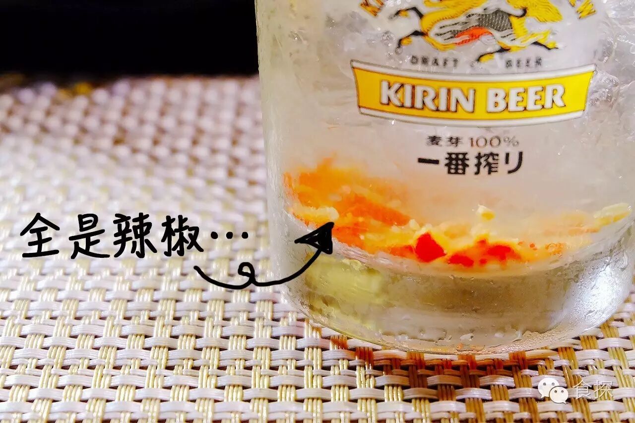 本来以为是圣女果沉底,凑近一看居然底部是满满的碎辣椒,光闻就有股很冲的辣椒味,味道的记忆点很深,墙裂推给猎奇人士。