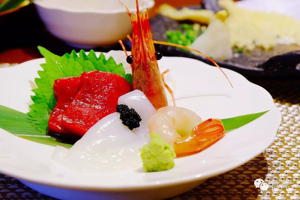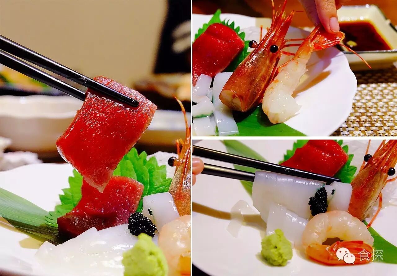 极富鲜味的赤贝鲜度极好,海胆嫩滑爽口泛着光,厚切三文鱼一口塞满最好,金枪鱼刺身切好一定要15分钟内吃完,清甜弹滑的甜虾连虾头也不放过,最喜欢的莫过配上黑鱼子的弹牙的墨鱼刺身。
