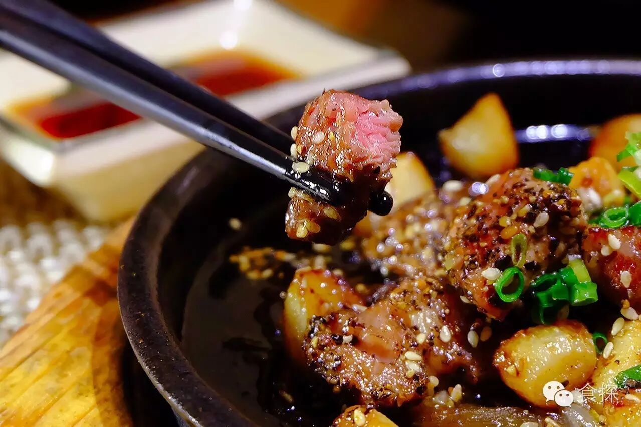 淋上的酱汁被火速锁进肉里,给牛肉再添层油光,隔着再远满鼻腔都充斥着肉味。吃起来好似舌吻一般,怕烫口所以又带丝紧张,开始咀嚼过后竟又是这么柔软鲜甜。