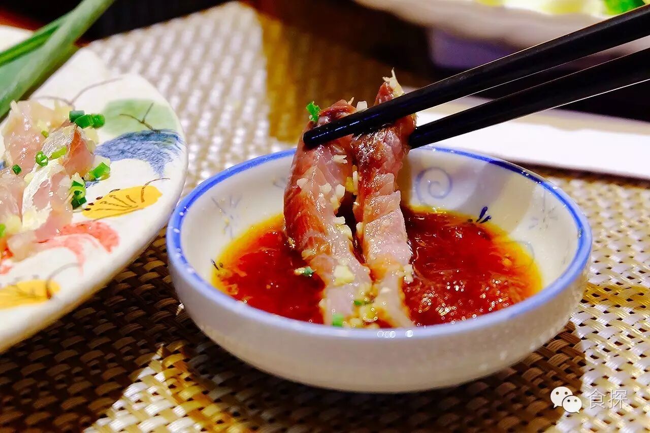 新鲜的生池鱼将鱼肉片下切成条状,撒上葱段和蒜末搅拌,借助最素雅的白色盘子依托出食物搭配的色泽。