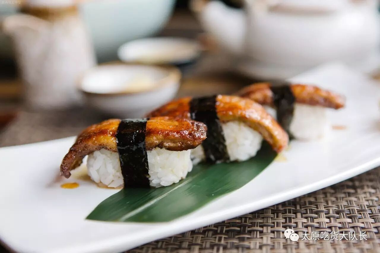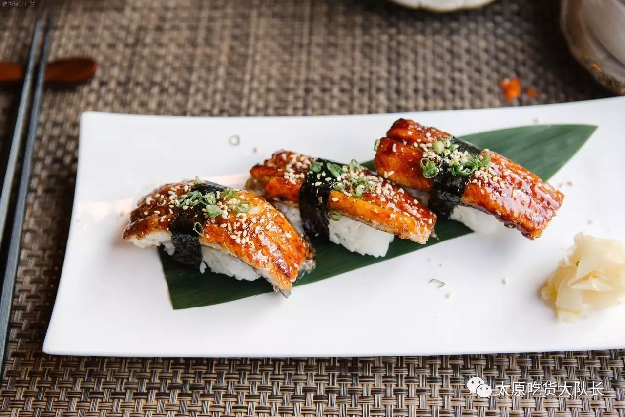 上铺烤活鳗鱼,最上撒蟹子提鲜,芝麻葱花辅之。