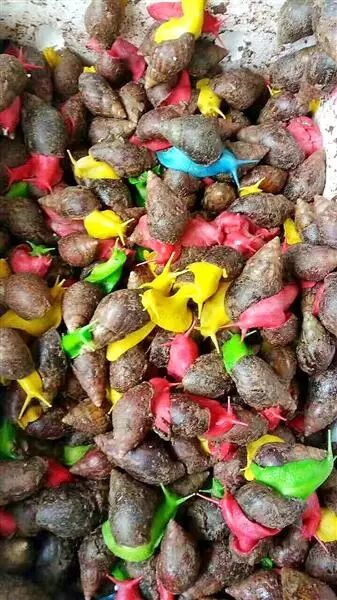 看过这些蜗牛后,成都市的相关动物专家表示,这种蜗牛其实就是普通的非洲大蜗牛,而颜色肯定是染色的。“这种染色技术在宠物市场很常见,染色鸡、鱼、青蛙等都有。”他表示,这种蜗牛作为入侵物种,在东南亚等国家已开始泛滥。
