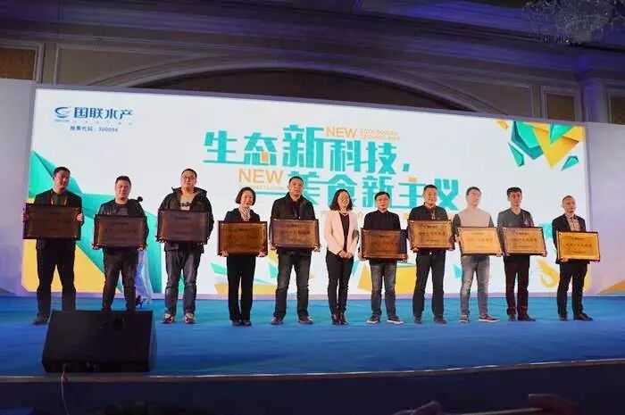 ■ 国联水产副总经理赵红梅为十佳代理商授牌后合影