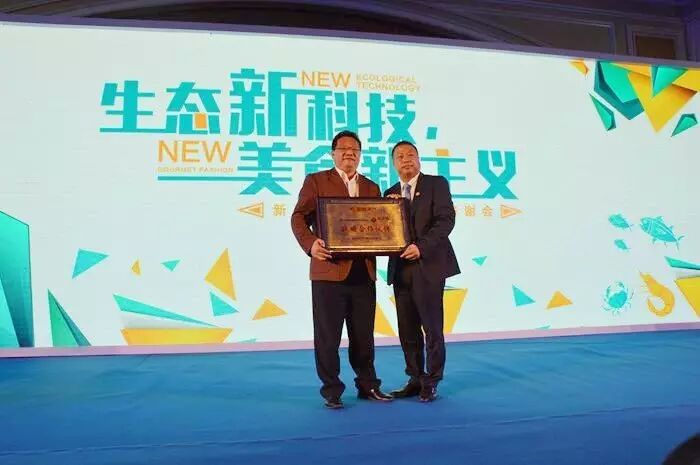 ■ 国联水产总经理陈汉为战略合作伙伴授牌并合影