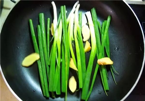 小葱洗净,切成锅的长度,铺在锅底,姜切片也铺在锅底