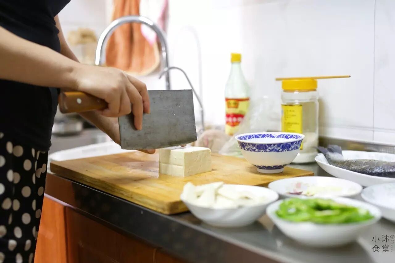 豆腐切成3cm长 2cm宽 1cm厚左右的块儿