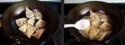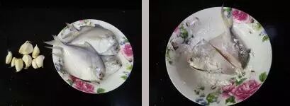 2.鲳鱼去鳃,去肚,洗净,对半切,拍些淀粉.