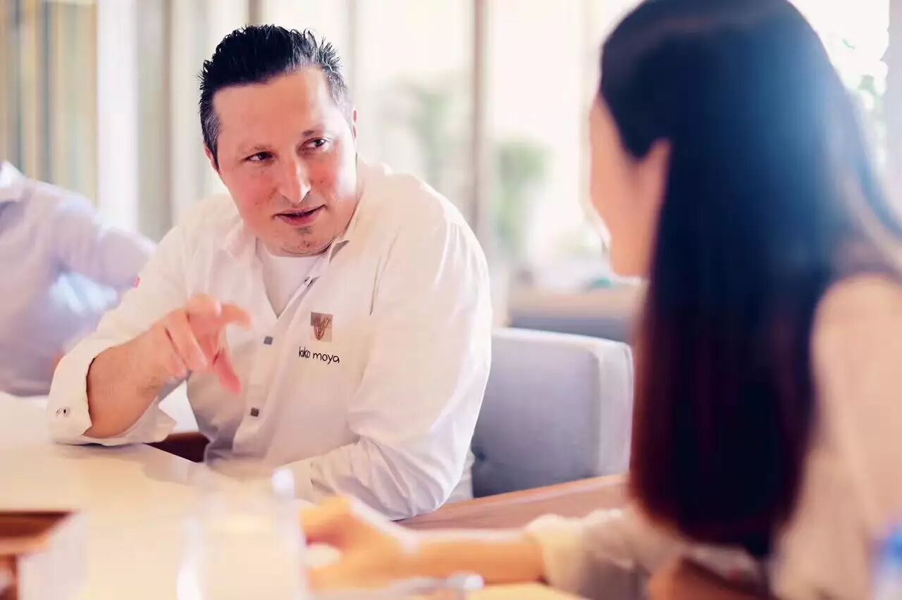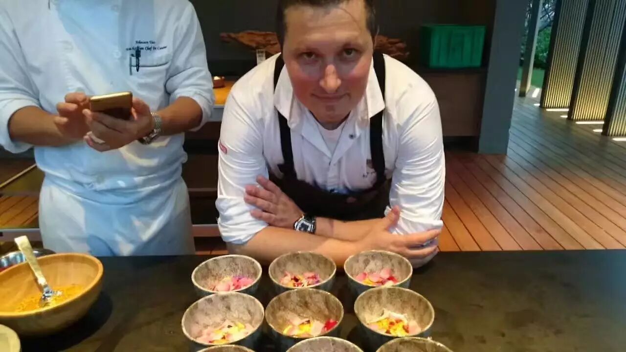 将地中海美食发挥到极致美味的Oliver Glowig,目前是一间米其林2星的餐厅主厨。他本人比较害羞,不善言辞,但烹饪的海鲜美味令人拍案叫绝。在意大利生活了17年,也算是半个地道的意大利人了。他说他的全家人都非常会做饭,在他心中岳母是最棒的厨师。