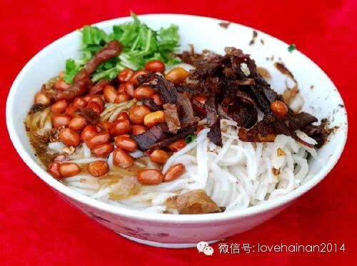 这一传统小吃形成于明代。主料为定安手工制作的米粉条,佐料为食盐、花生油、味精、生抽、胡椒粉、绿豆芽等。点火倒入适量的花生油、蒜泥进锅中始锅,蒜的香味出来后,加入适量的猪肉片、鱿鱼丝,或切成小块的“三鸟”内脏炒熟,再加入主料和佐料快炒1分钟左右即可。食用时粉质韧性好,味可口,是早餐、夜宵的美食,正餐盛宴中也多见。