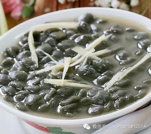 这一传统小吃形成于元代。又称鸡屎藤粑,是民间滋补品。鸡屎藤是一种蔓藤类植物,喜欢生长于气候温热、潮湿的灌木丛中,生命力强。其叶用手揉烂初闻有一股鸡屎味,故名鸡屎藤。但久闻却有一股泌人肺腑的清香。鸡屎藤清热、解毒、去湿、补血,润肺醒脑,民间叫土参。制作主料为鸡屎藤叶、大米、糯米,配料为生姜、红糖。将适量的新鲜鸡屎藤叶、大米、糯米放在碾米机中碾成粉状,然后用水和匀,掐成象南瓜仔状的粿仔。待锅中水烧开后,放下粿仔、生姜,再加适量红糖即可。食用时粿仔微有咬劲而软滑。定安县民间多在农历七月初一日制作食用,认为吃了可避邪防疫,有人还把鸡屎藤捆成一小团挂在门前屋后加强避邪。
