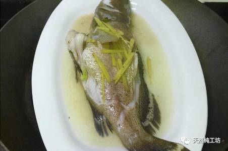 3.石斑鱼铺上姜丝,两段葱白,一起蒸