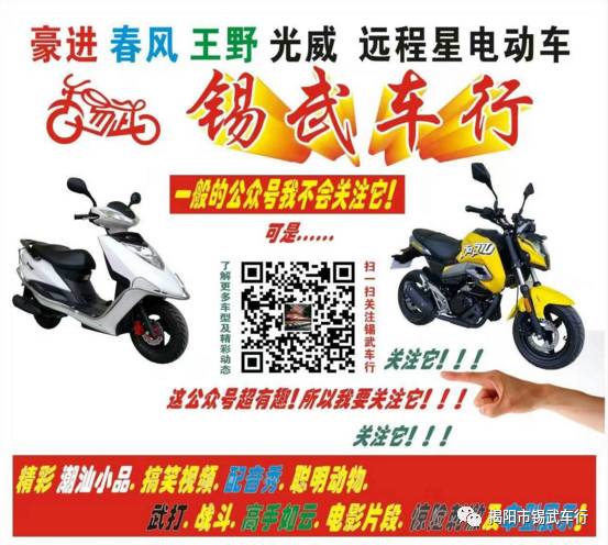 长按上图后按“识别图中二维码”关注揭阳市锡武车行!