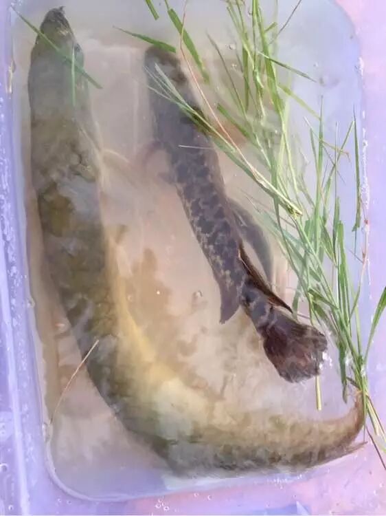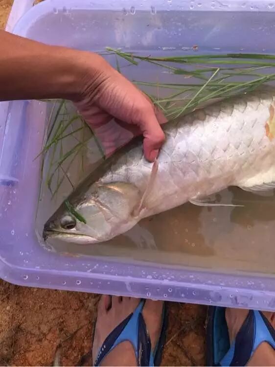 朋友也路到了一条黑鱼,我叫他过来看一下这是什么鱼。他见到之后就说:我靠!这不是银龙鱼嘛!