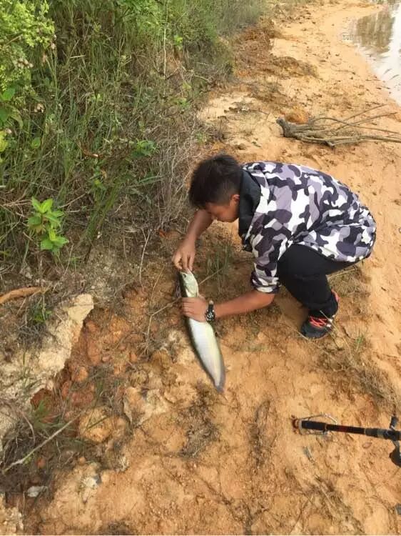 两个小时之后,手感慢慢的上来了。然后我枕戈待旦的期望路到一条大黑,可是不一会就吃钩了,手一提竿,猛地一瞧,嗯?怎么是个白的?不是鲶鱼,也不是黑鱼,怎么会是一条没见过的鱼呢?