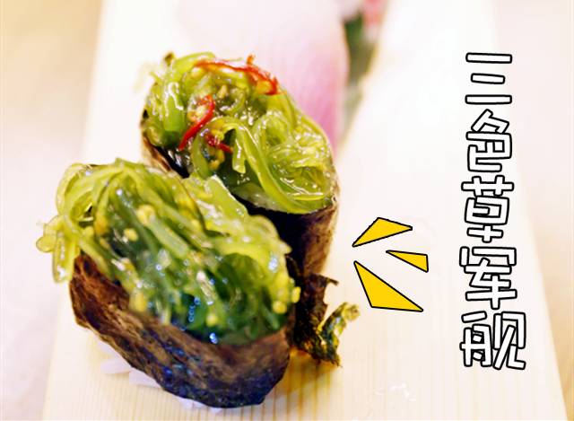 三色草军舰,鲜咸的海苔将海草的鲜香衬托得更加明显,口感爽脆,确实让人爱不释口的呢~