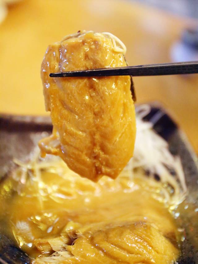 八爪鱼肉质厚实,鲜嫩柔软中略带爽脆,沾上酱油配以少许芥末,受到刺激的味蕾,仿佛在北海道的天际翱翔!