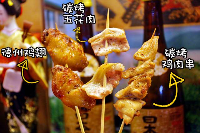 日本人将串烧称为“烧鸟”,烧鸟并非鸟,而是鸡。日式烧鸟讲究原味和香味,所以藏尾用纯炭火烤制,足够入味。