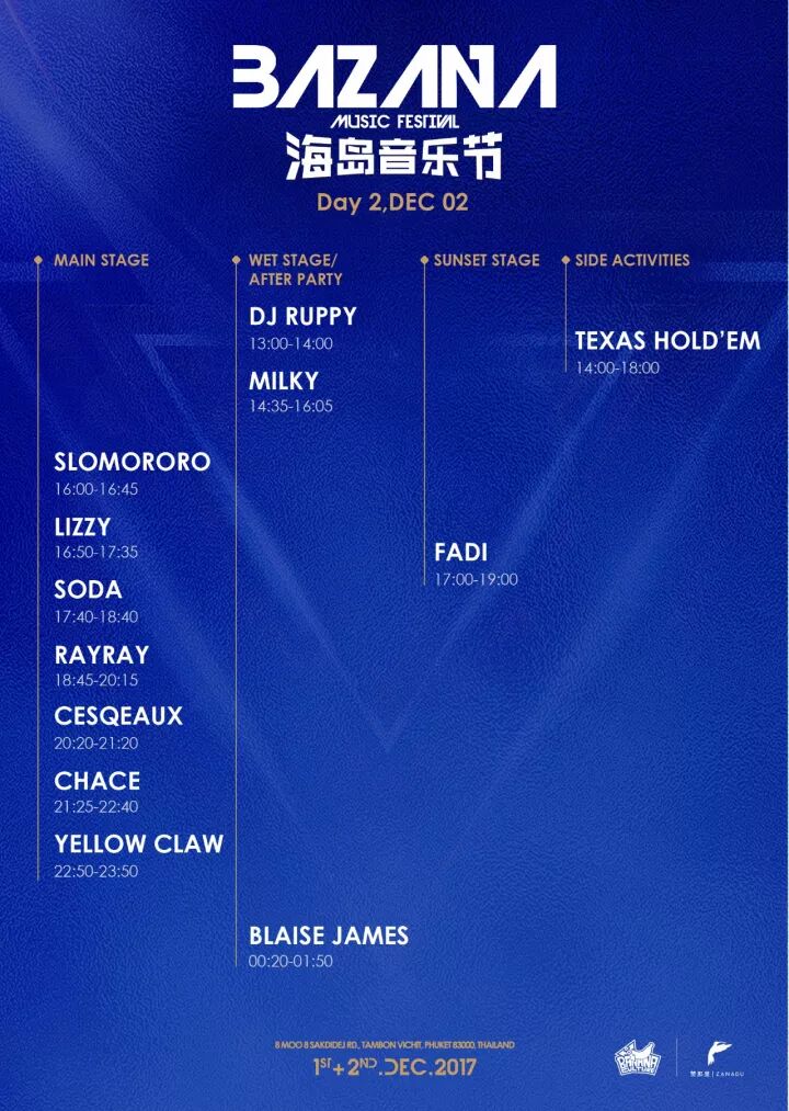 在 1 座最受旅行者欢迎的岛屿、汇聚 3 大殿堂级电音舞台、7 大洲饕餮美食、12 款潮流极致体验、25 组国际顶尖 DJ 组成了 BAZANA 海岛音乐节上,我们选择以一种更 High 的方式,向 2017 年 Say Bye Bye !