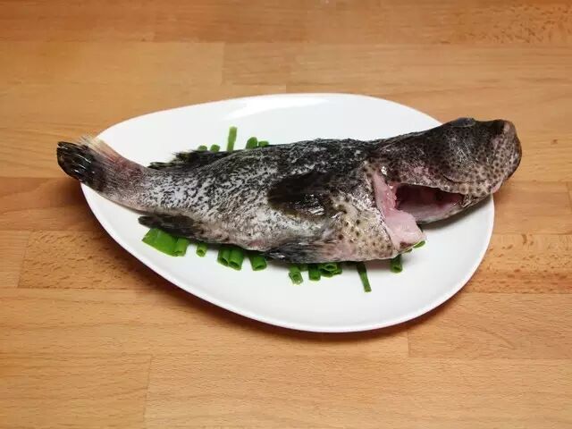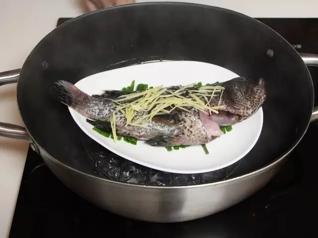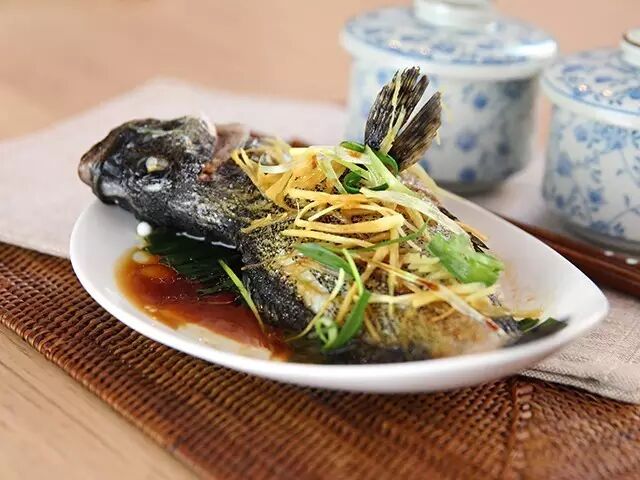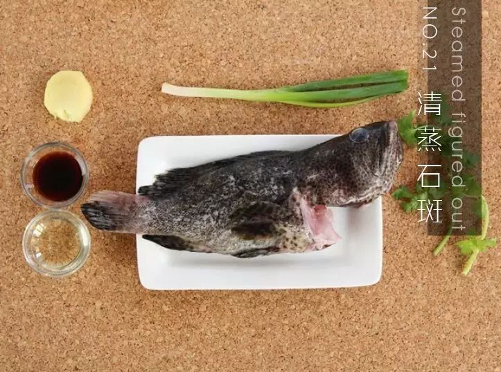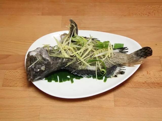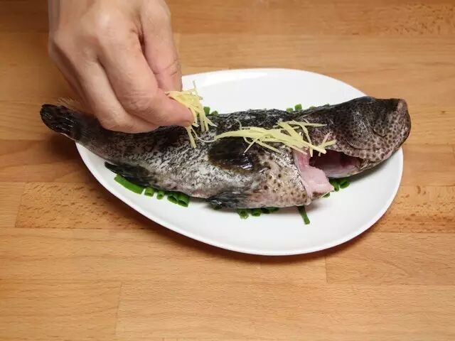 食材:石斑1条(约600g) / 姜10g,切丝 / 葱20g,一半切丝,一半切段