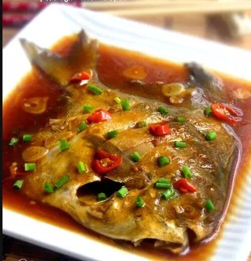 8.剩余的汤汁用水淀粉勾芡淋在鲳鱼身上,最后撒上香葱即可