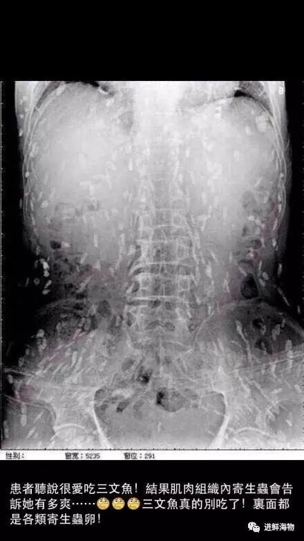 还有疯传的满是白斑的CT片都几乎变相坐实了生吃鱼片就是会得寄生虫病的“事实”。